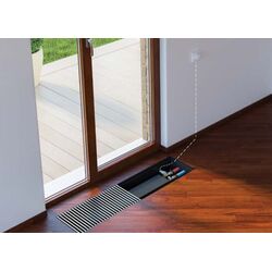 Внутрипольные конвекторы для отопления без тангенциального вентилятора для повышения удобства управления, дополняются сервоприводом и термостатом. Наличие данной системы автоматического регулирования внутрипольного конвектора с естественной конвекцией дает возможность установки необходимого температурного режима на термостате, который должен находиться в одном помещении с конвектором. При видимых температурных колебаниях термостат подает команду сервоприводу, установленному на входном вентиле обогревателя. Работа сервопривода заключается автоматической регулировке скорости потока теплоносителя в конвекторе. Необходимо определиться с оптимальной температурой в помещении, задать режим, который будет поддерживаться отопительной системой в автоматическом режиме. Сервопривод для отопления устанавливается в коробе конвектора на термостатический клапан.