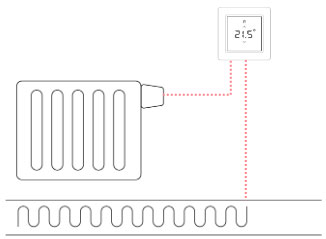 Система Danfoss Iconможет по единому датчику одновременно управлять радиаторами и теплым полом в помещении. Система обеспечит подключение радиатора только тогда, когда тепла от пола недостаточно для нагрева помещения. Требуется подключить внешний датчик температуры пола.