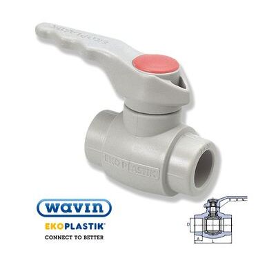 Ekoplastik Кран шаровой предназначен для перекрывания потока жидкости в трубопроводе. Может работать по всему диапазону рабочих температур и давления (в зависимости от типа трубы). Имеет компактные размеры и эргономичную форму. Идеально подходит для мест, требующих компактности. Используется пластиковыми трубами WAVIN Ekoplastik всех типов.