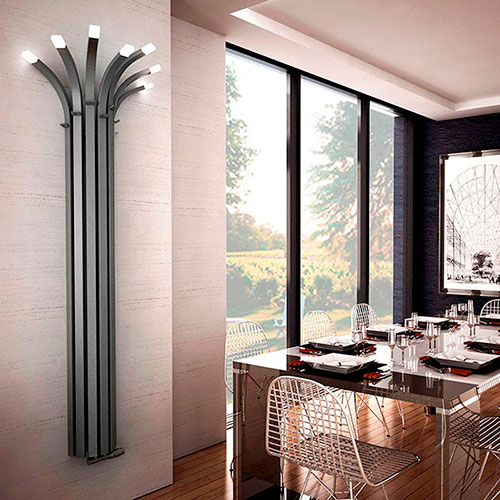 Enix Palma радиатор, осуществлен в форме пальмового дерева, производства Польша. Качественный отопительный прибор Enix Palma надежен и легок в эксплуатации, дополнит Ваш оригинальный и уникальный интерьер став его удачным акцентом. Enix Palma в верхней части оснащен подсветкой, которая по желанию может быть исполнена в разных цветах, а также укомплектован декоративными вешалками. Максимальное рабочее давление: 8 бар. Доступен в любом цвете из цветовой палитры ENIX за исключением: Silver, Bronz, Metalic, Chrome Effect.