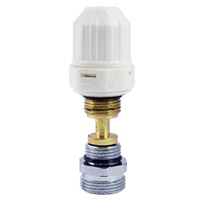 Fado VK01 Вентильный клапан для коллекторов устанавливается на обратную балку коллекторных блоков KRV и KRZ. Вместо белой крышки на клапан можно установить сервопривод. Размер резьбы для присоединения сервопривода М30х1,5.