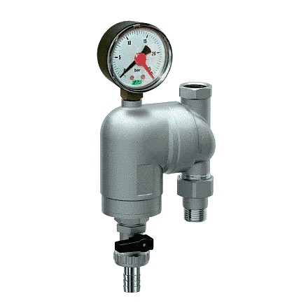 Хромированный фильтр для водопроводных систем с регулируемыми соединениями в комплекте с манометром, корпус из латуни CB770S, стальная фильтрующая сетка, AISI 304, степень фильтрации 300 мкм, номинальное давление 25 бар, максимальная рабочая температура: 95°C.