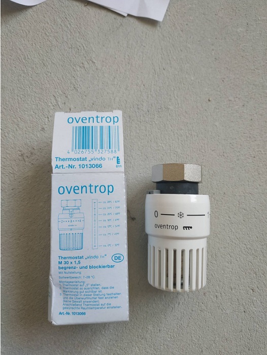 Термоголовка Oventrop  Vindo TH – это, в первую очередь, отменное немецкое качество, поэтому данная термоголовка отличается длительным сроком службы и безупречной работой. Она подключается на резьбе М30 х 1,5, имеет нулевую отметку и позволяет перекрывать термоклапан, что удобно при демонтаже радиатора, так как отпадает необходимость в сливе системы. Изделие характеризуется удобством эксплуатации и настройки режима, потому что регулировка температуры осуществляется по градации +7…+28 градусов на шкале от 0 до 5 единиц. Латунное изделие произведено из материала, устойчивого к выщелачиванию цинка. Рассчитано на максимальную температуру теплоносителя +120 градусов.