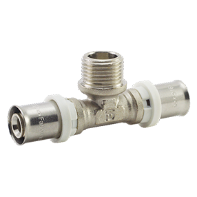 Fado HDT21 Трійник прес із зовнішнім різьбленням призначений для створення нероз'ємних з'єднань трубопроводів з металопластикових труб (PEX-AL-PEX, PEX-AL-PE, PE-AL-PEX, PEX-AL-PERT) в системах питного та господарського водопроводу, гарячого водопостачання та опалення. Фітинги сумісні із металопластиковими трубами.