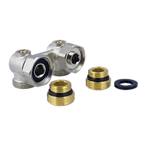 Fado RB02 Вузол нижнього підключення кутовий використовуються для підключення сталевих панельних радіаторів з нижнім підведенням до системи опалення. Перекриття потоку здійснюється за допомогою вбудованих шарових кранів. Приєднання до трубопроводу здійснюється через євроконус.