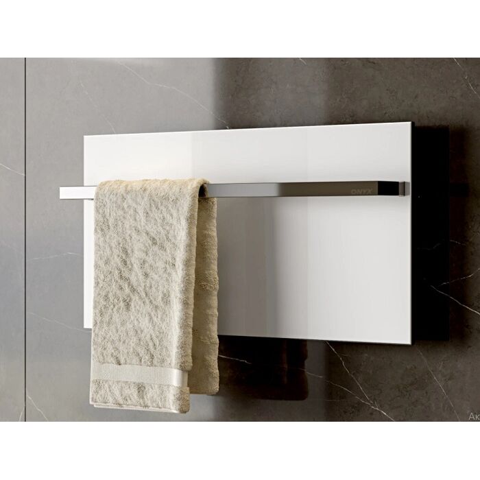 Сушка для рушників Onyx виготовлена із загартованого скла, що надає рушникосушителю міцності. Нагрівальний елемент розташований між корпусом та склом, запобігаючи проникненню вологи та повітря, підвищуючи безпеку. Електричний сушка для рушників Onyx має високий рівень захисту в своєму класі - IP55. Вішалки виготовлені з полірованих прямокутних профілів (нержавіюча сталь). Товщина сушки для рушників Onyx всього 8 мм.