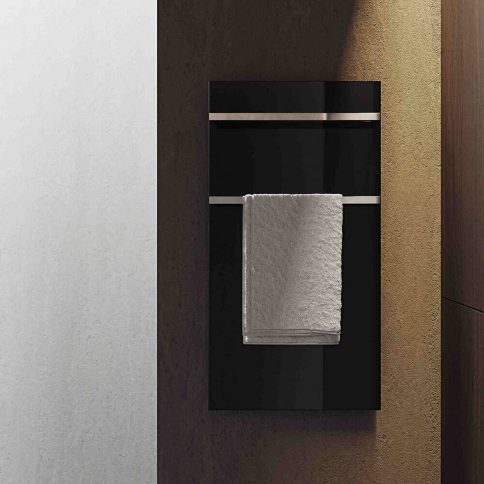Сушка для рушників Onyx виготовлена із загартованого скла, що надає рушникосушителю міцності. Нагрівальний елемент розташований між корпусом та склом, запобігаючи проникненню вологи та повітря, підвищуючи безпеку. Електричний сушка для рушників Onyx має високий рівень захисту в своєму класі - IP55. Вішалки виготовлені з полірованих прямокутних профілів (нержавіюча сталь). Товщина сушки для рушників Onyx всього 8 мм.