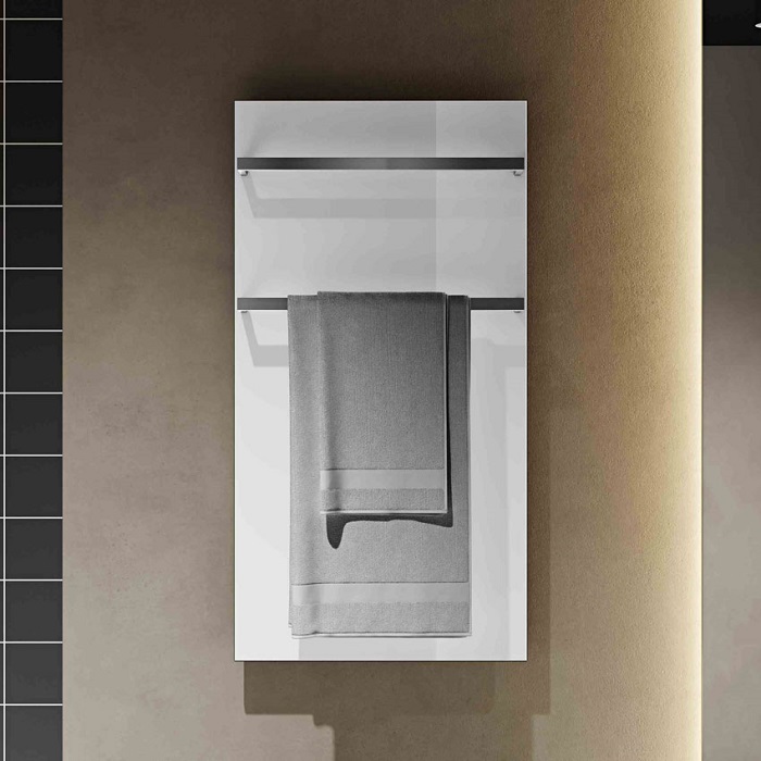 Сушка для рушників Onyx виготовлена із загартованого скла, що надає рушникосушителю міцності. Нагрівальний елемент розташований між корпусом та склом, запобігаючи проникненню вологи та повітря, підвищуючи безпеку. Електричний сушка для рушників Onyx має високий рівень захисту в своєму класі - IP55. Вішалки виготовлені з полірованих прямокутних профілів (нержавіюча сталь). Товщина сушки для рушників Onyx всього 8 мм.