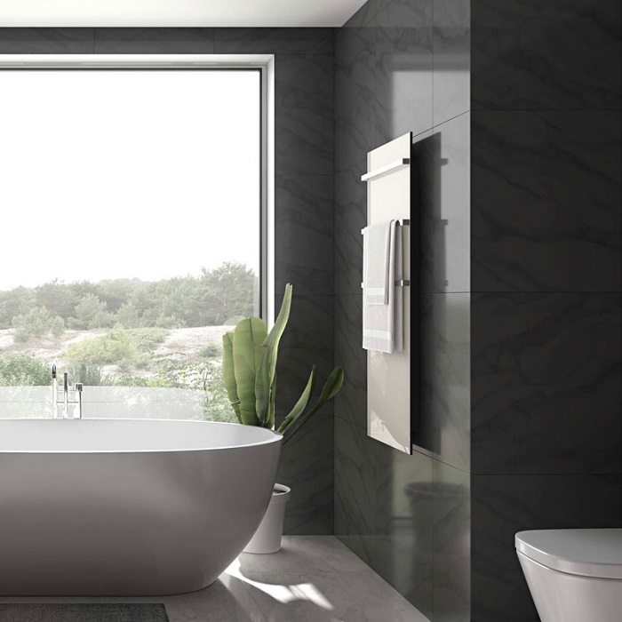 Сушка для рушників Onyx виготовлена із загартованого скла, що надає рушникосушителю міцності. Нагрівальний елемент розташований між корпусом та склом, запобігаючи проникненню вологи та повітря, підвищуючи безпеку. Електричний сушка для рушників Onyx має високий рівень захисту в своєму класі - IP55. Вішалки виготовлені з полірованих прямокутних профілів (нержавіюча сталь). Товщина сушки для рушників Onyx всього 8 мм.