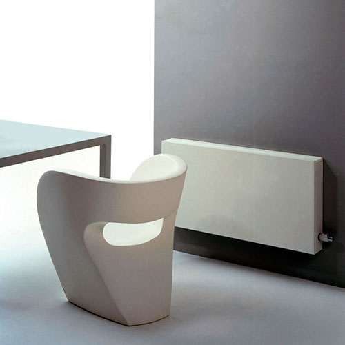 Jaga Strada DBE плоский настінний радіатор виробництва Бельгія, з мідно-алюмінієвим теплообмінником, призначені для встановлення в стистемах центрального опалення, підключення нижні ліве або праве підключення в стіну або підлогу.