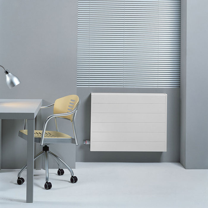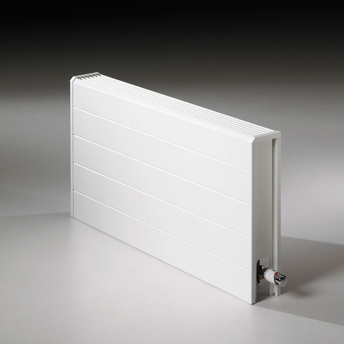 Jaga Tempo плаский лінійний радіатор з мідно-алюмінієвим теплообмінником - призначений для встановлення в стистемах центрального опалення, підключення нижні ліве або праве підключення в стіну або в стать.