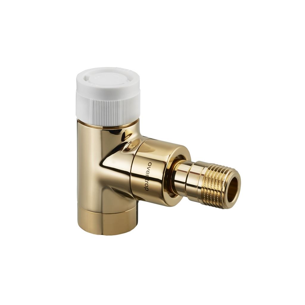 Oventrop Термостатичний клапан кутовий, позолочений для двотрубних систем опалення PN 10 з примусовою циркуляцією. Корпус з латуні, кільце ущільнювача та ущільнення тарілки клапан з EPDM, шпиндель з нержавіючої сталі, підключення приховані. Ексклюзивний клапан для сучасних приміщень, поверхня спеціально оброблена. Значення kv: 0,95. Виконання: кутовий, різьбове з'єднання під термостат M30 x 1,5. Діаметр: Ду15 Приєднувальне різьблення: R 1/2" ВР x R 1/2" НР.
