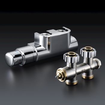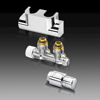 Вузол нижнього підключення Oventrop Multiblock T/Uni SH Хром (Прямий) 1184283 з налаштуванням для підключення дизайн радіаторів.