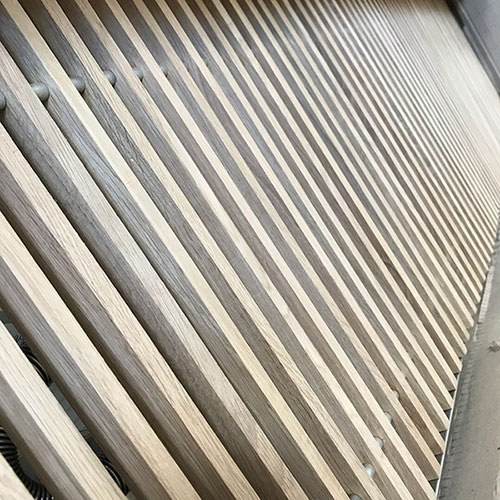 При виробництві дерев'яних решіток використовують дубову дошку. У стандартному виконанні грати надаються у кольорі природної світлої деревини без додаткової обробки. Форма ламелей може бути округленою (серія Euro), квадратною (Mini) або прямокутною</strong > (Standart).