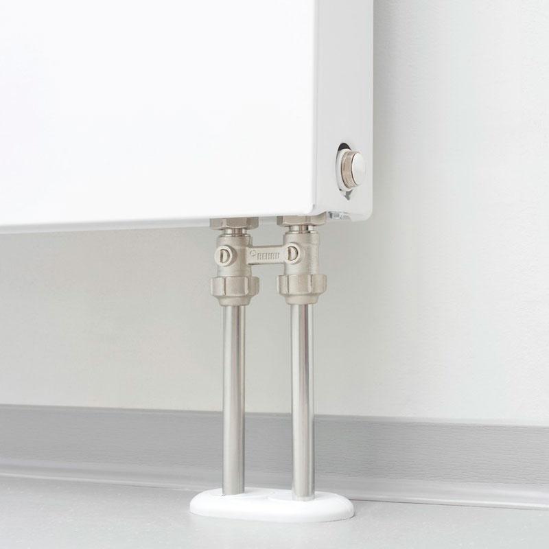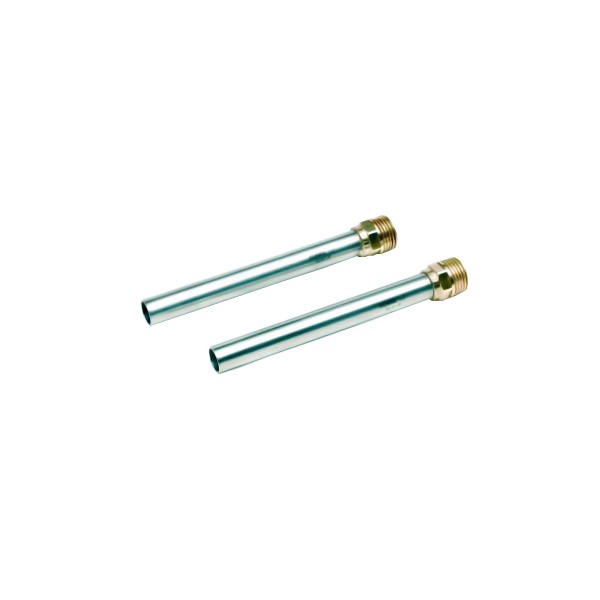 Rehau Приєднувальна трубка для підключення опалювального приладу із зовнішнім різьбленням призначена для з'єднання запірної арматури на опалювальному приладі з настінним косинцем Rautitan Rp 1/2" або монтажним вузлом 240921-001. Матеріал: нержавіюча сталь 10 D8 DIN 10 D8. трубки 150 мм.