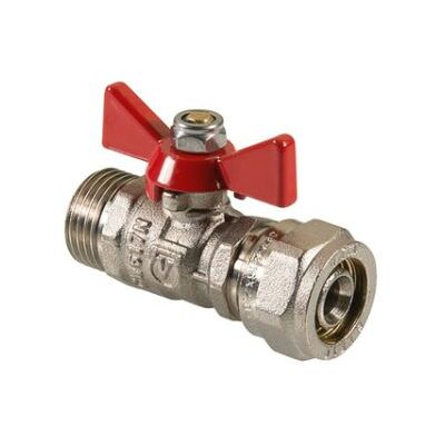 (VT.341.N) Кульовий кран редукований (зменшеного проходу) для використання у складі інженерних систем та технологічних установок на основі металопластикових труб при температурі від –15 до +110 °С та робочому тиску до 10 бар. Неремонтопридатний, з мінімальним ресурсом 4 тис. циклів. Оснащений ручкою типу «метелик» із алюмінієвого сплаву з епоксидним фарбуванням. З'єднання з металополімерним трубопроводом – обтискне, одностороннє; різьблення другого патрубка - зовнішня. Не призначений до застосування на стояках, магістральних трубопроводах та ділянках систем, в яких можуть виникнути згинальні зусилля, що передаються на корпус крана.