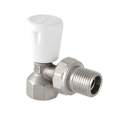(VT.017.N) Угловой радиаторный клапан. Основное назначение – ручное плавное регулирование расхода теплоносителя через отопительный прибор. При замене регулировочной ручки на защитный колпачок может использоваться в качестве настроечного клапана. Наличие полусгона позволяет монтировать и демонтировать клапан без демонтажа трубопровода. Ремонтопригодный. Рабочая температура – до 110 °С, давление – до 10 бар. Резьба присоединений – внутренняя/наружная.